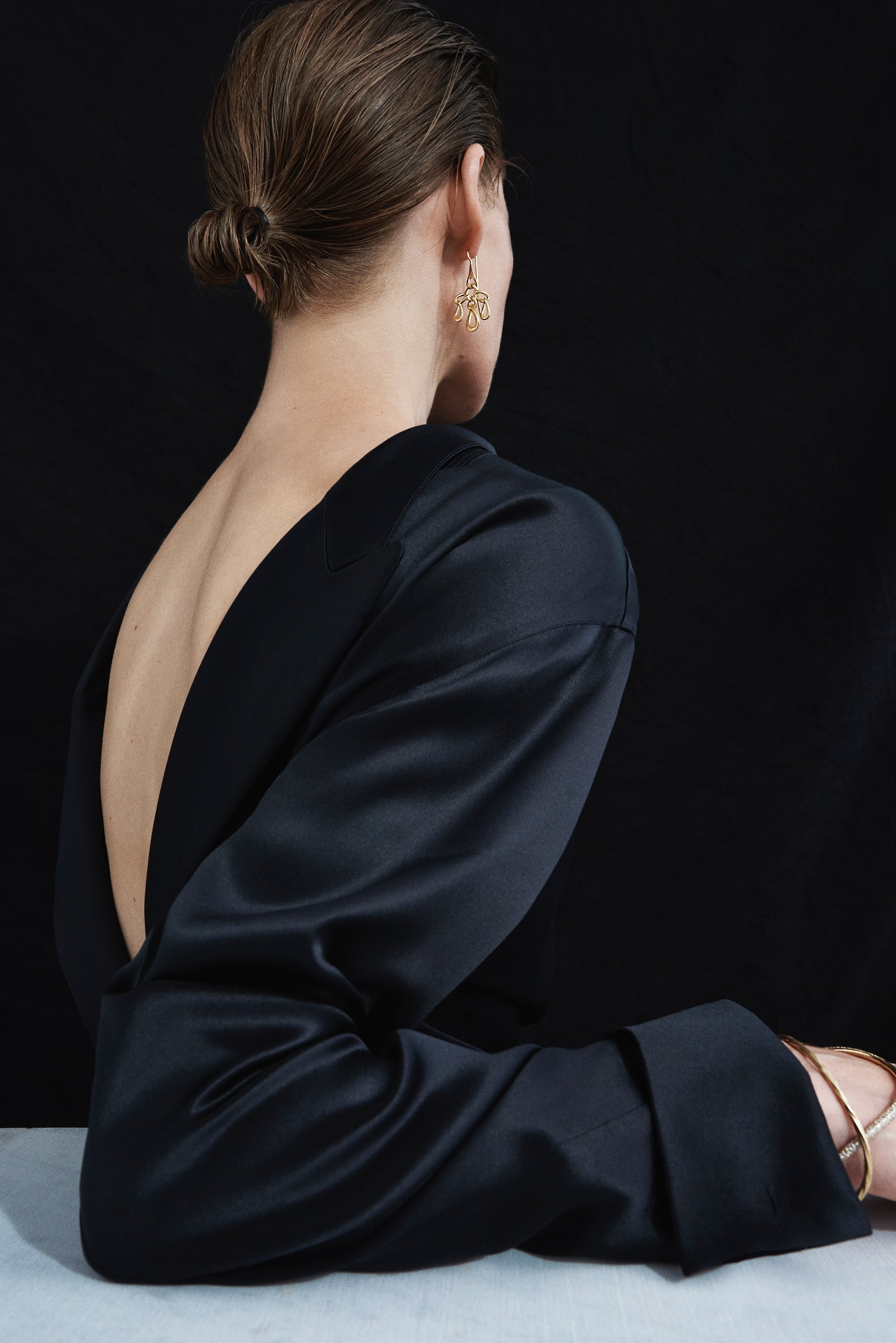 En manipulation af ædelmetallige til punktet inden det overgiver sig. Et konstrueret flow med funktion. Øreringe, ringe og armbånd forbindes indbyrdes i en ny orden.”