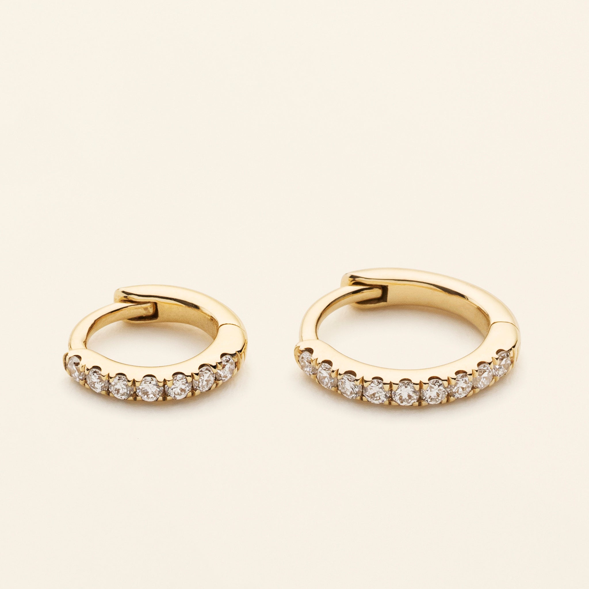 Medium hoop i 18K guld og diamanter. Egner sig også til en piercing og som almindelig hoop. Hoop måler 9mm i diameter.